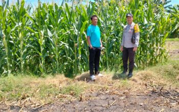 Bripka Ikhwanul Muslimin selaku Bhabinkamtibmas Desa Dadibou memantau kondisi lahan dan memberikan motivasi serta edukasi kepada petani tentang teknik bercocok tanam yang baik Kamis (26/06/25) siang kemarin.