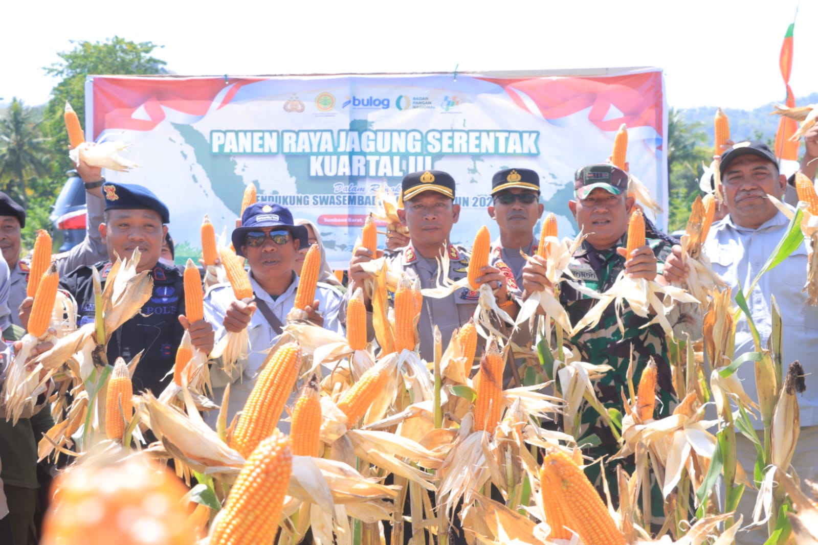 Sumbawa Barat – Polres Sumbawa Barat bersama unsur Forkopimda menghadiri dan mengawal kegiatan Panen Raya Jagung Serentak Kuartal III Tahun 2025 yang berlangsung di titik lahan pertanian di kecamatan jereweh Kabupaten Sumbawa Barat, Sabtu (27/09/2025).