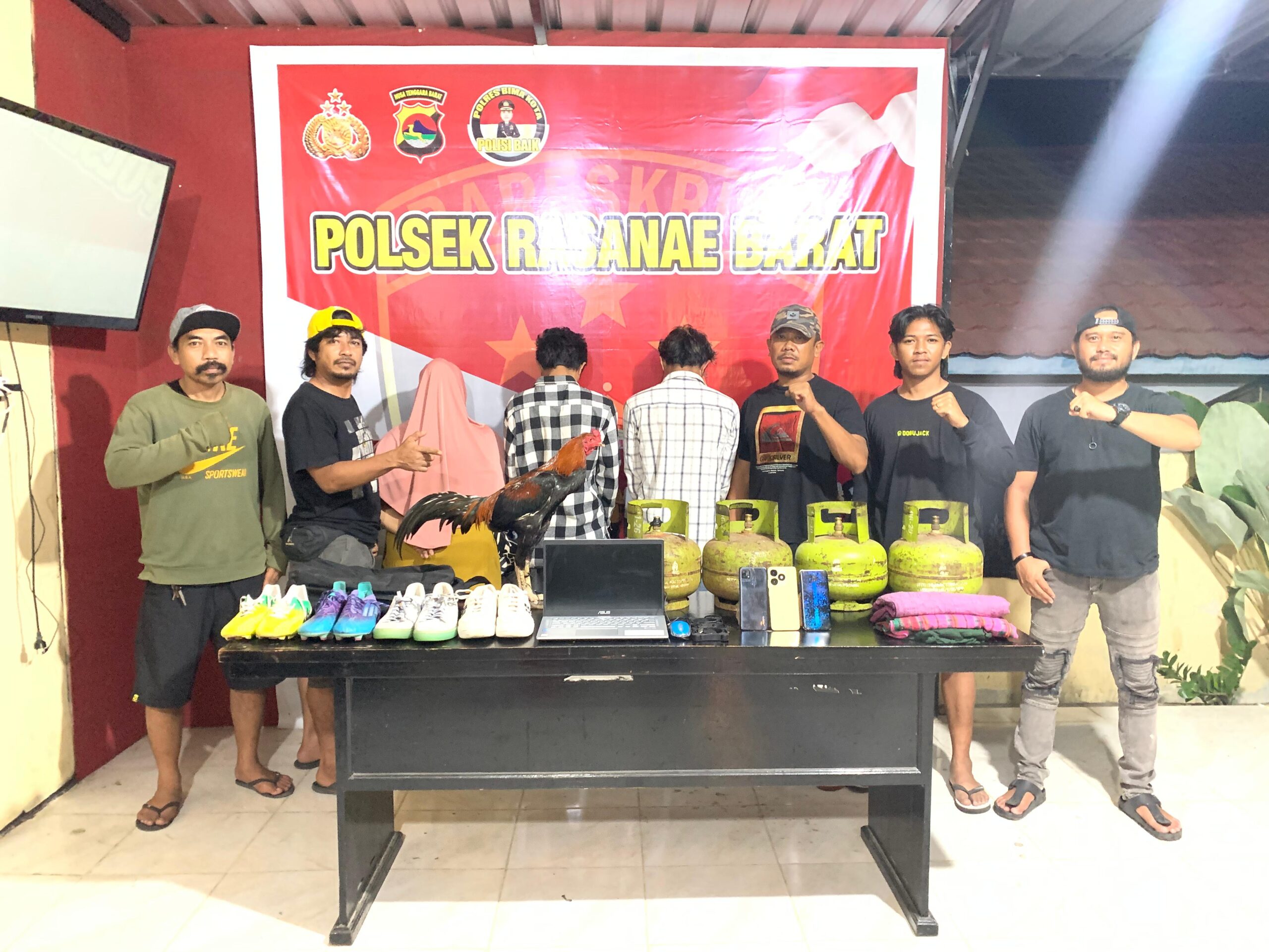 Barang bukti yang diamankan di antaranya satu unit laptop ASUS warna silver, tiga unit handphone, empat pasang sepatu, empat tabung gas elpiji 3 kilogram, dua sarung tenun, satu lembar baju hijau, dan sejumlah barang lain dengan total kerugian korban mencapai Rp7.650.000.