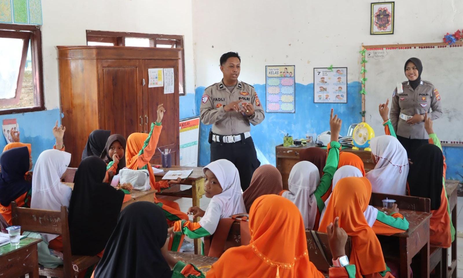 Lanjutnya, dengan senyum dan humanis Brigadir Nadya (Polwan) salah satu anggota Satlantas Polres Bima memberikan materi dan mengenalkan tugas kepolisian di hadapan para pelajar.