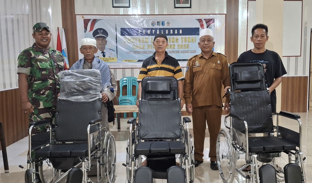 Kegiatan yang berlangsung di Kantor Desa Dopang tersebut turut dihadiri oleh Kepala Desa Dopang beserta staf, Penghulu Desa, para Kepala Dusun, serta warga penerima bantuan. Suasana haru dan bahagia terpancar saat kursi roda diserahkan, menjadi simbol nyata perhatian pemerintah dan TNI terhadap masyarakat yang membutuhkan.