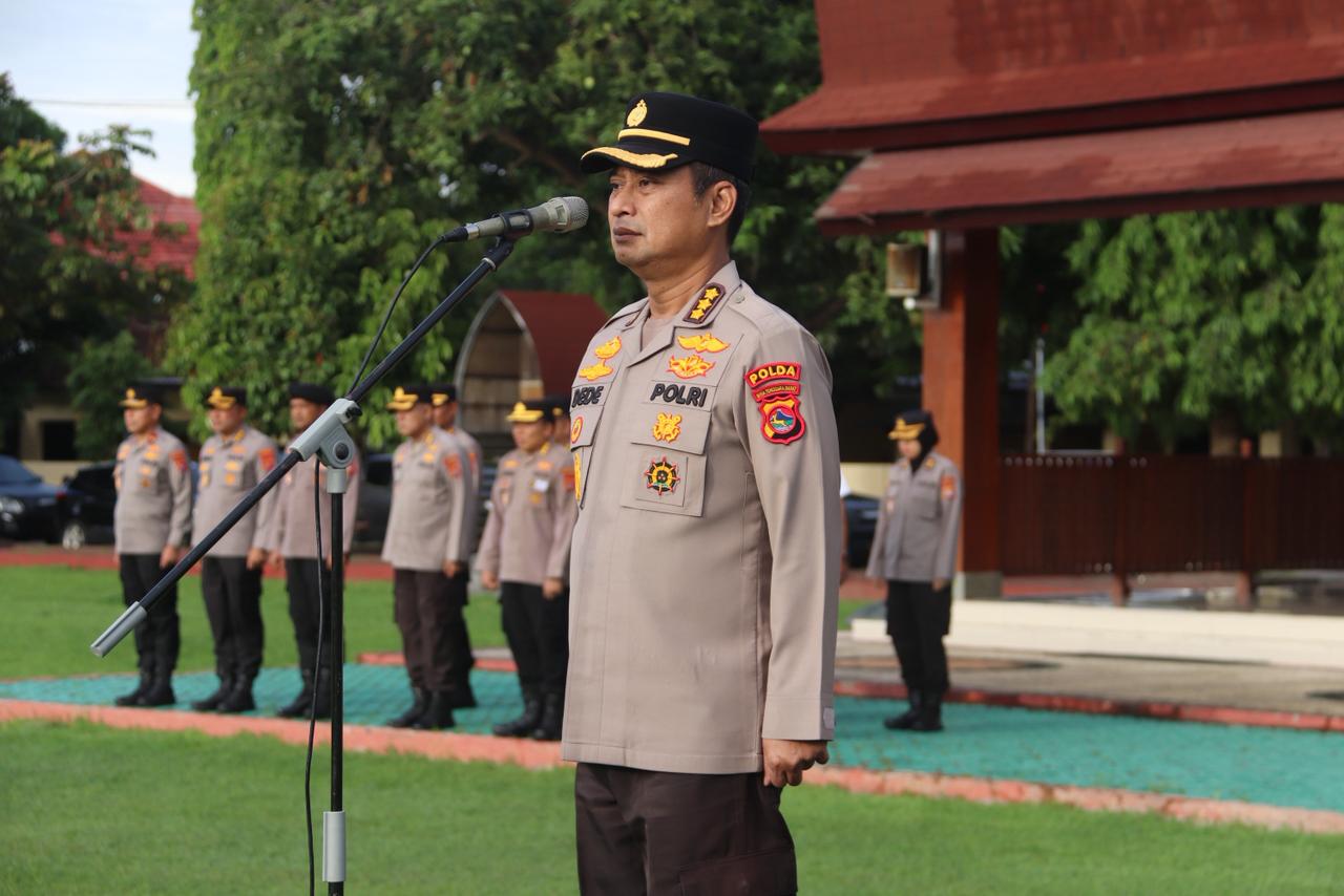 Inspektur Pengawasan Daerah (Irwasda) Polda NTB Kombes Pol Dede Ruhiat Djunaedi, S.I.K., M.H. sosialisasikan Whistle Blower System dan SP4N LAPOR pada saat pelaksanaan apel pagi personel di Lapangan Bhara Daksa Polda NTB Kamis, 13 Nevember 2025.