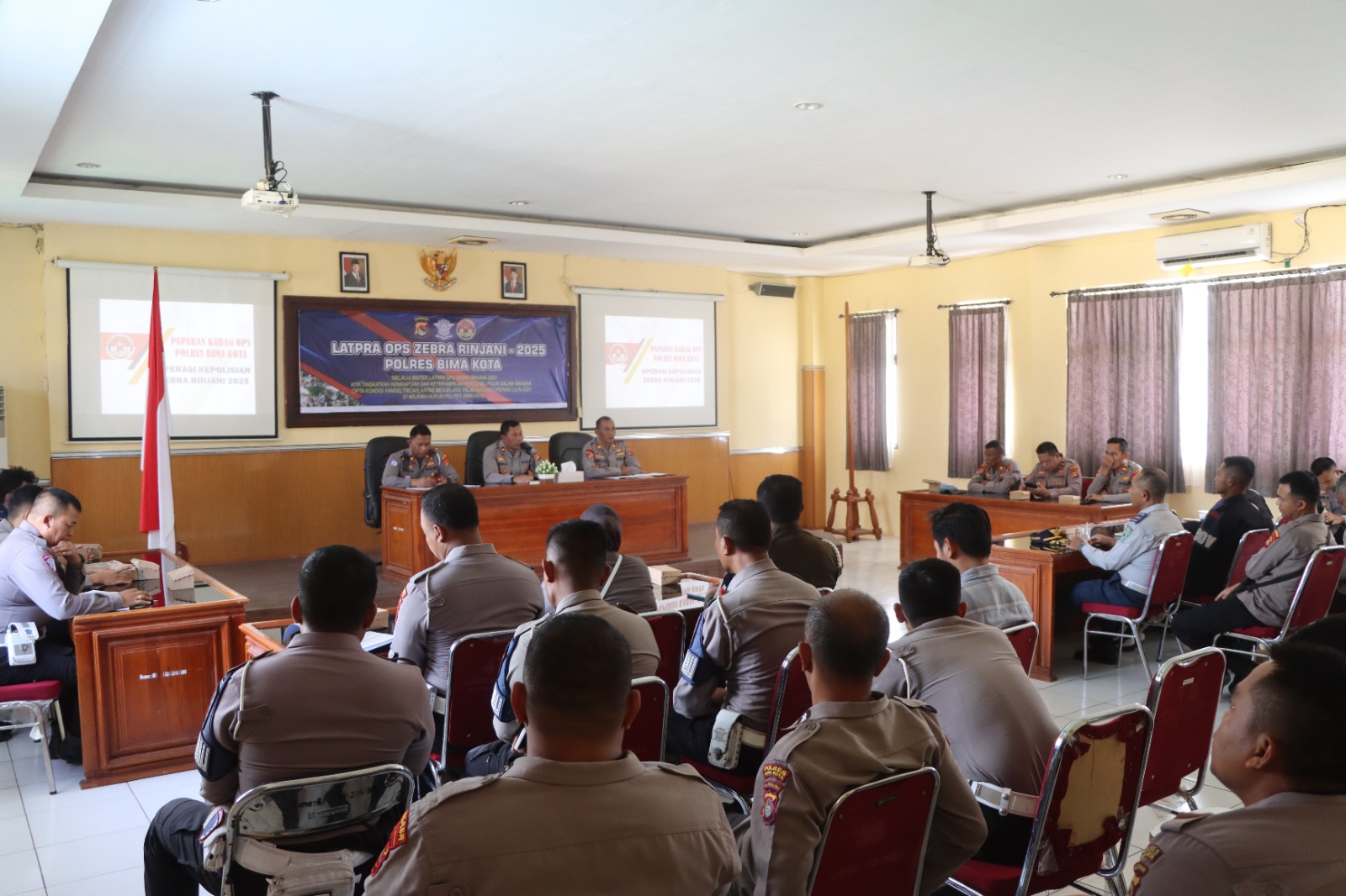 Kota Bima, NTB (15 November 2025) – Dalam rangka mematangkan persiapan menjelang pelaksanaan Operasi Zebra Rinjani 2025, Polres Bima Kota menggelar Latihan Pra Operasi (Lat Pra Ops) pada Sabtu, 15 November 2025, pukul 09.00 WITA bertempat di Ruangan Rupatama Polres Bima Kota.