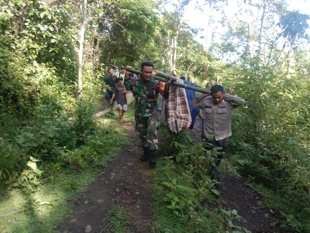 Bhabinkamtibmas dan Warga Marente Tandu Pasien Melewati Akses Jalan Rusak