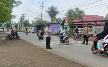 Desa Air Suning, Seteluk — Bhabinkamtibmas Desa Air Suning, Brigadir Taufik Rahadi, turut mendampingi kegiatan sosialisasi pencegahan penyakit rabies yang dilaksanakan oleh Pos Kesehatan Hewan (Poskeswan) bersama unsur instansi terkait di Desa Air Suning, Kecamatan Seteluk.