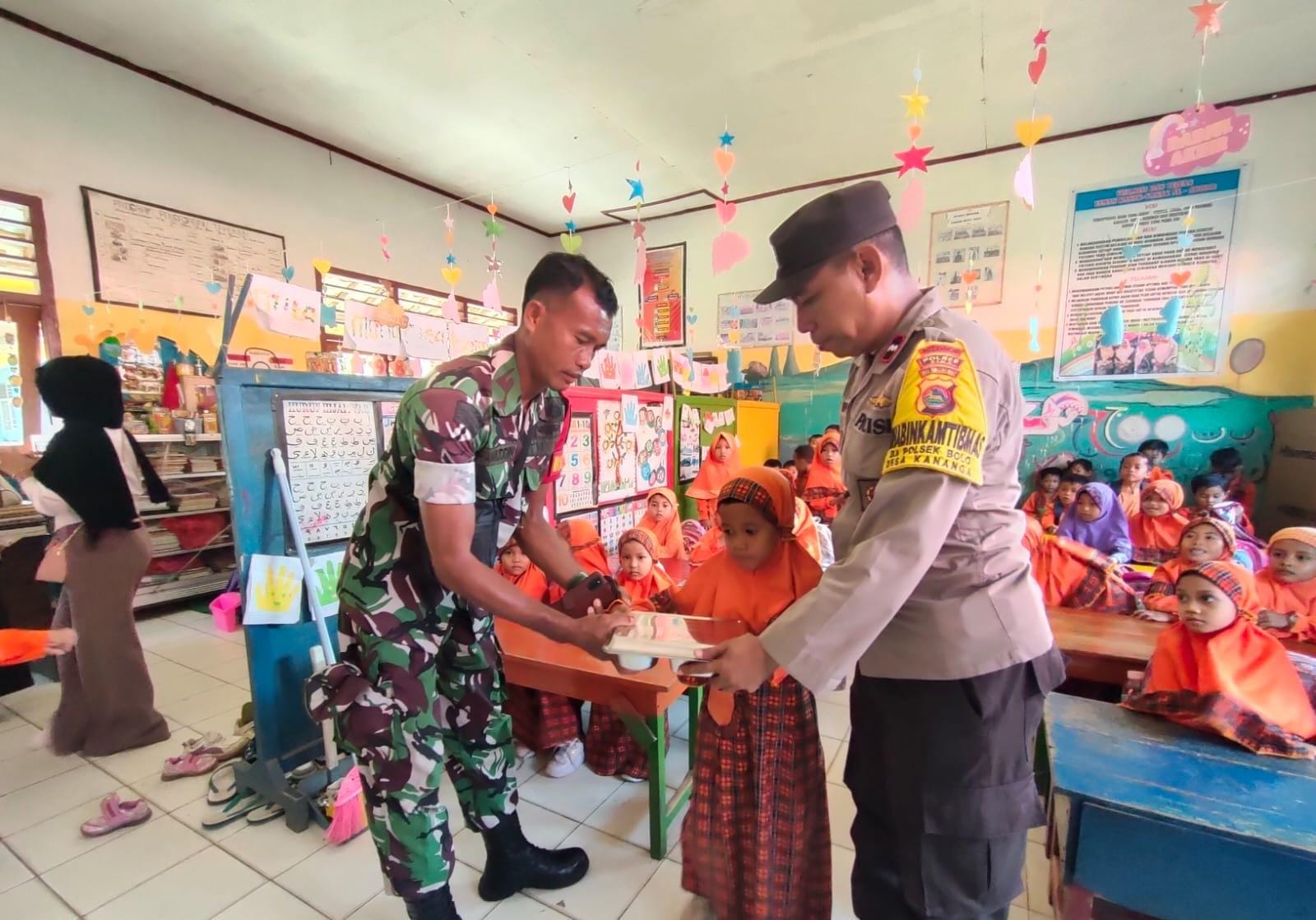 Pendistribusian 1840 paket makanan bergizi gratis yang diperuntukkan bagi ribuan pelajar mulai tingkat Paud hingga SMA/ sederajat di wilayah kecamatan Bolo di kawal dan dimonitoring oleh Personel Polsek Bolo Polres Bima Polda NTB.