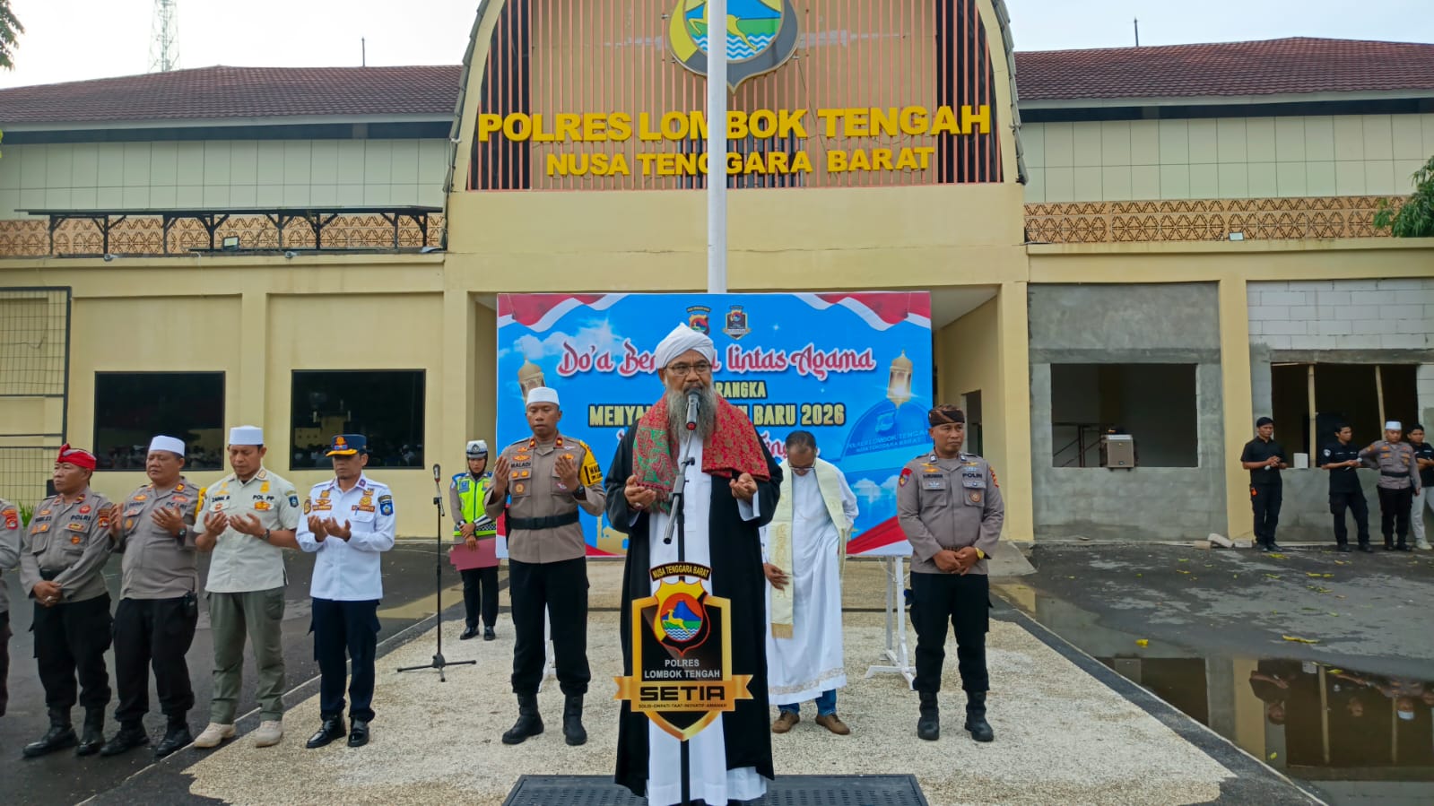 Lombok Tengah,(NTB) – Dalam rangka menyambut malam pergantian Tahun Baru, Polres Lombok Tengah menggelar kegiatan doa bersama lintas agama yang berlangsung khidmat di lingkungan Mapolres Lombok Tengah, Selasa (31/12/2025).
