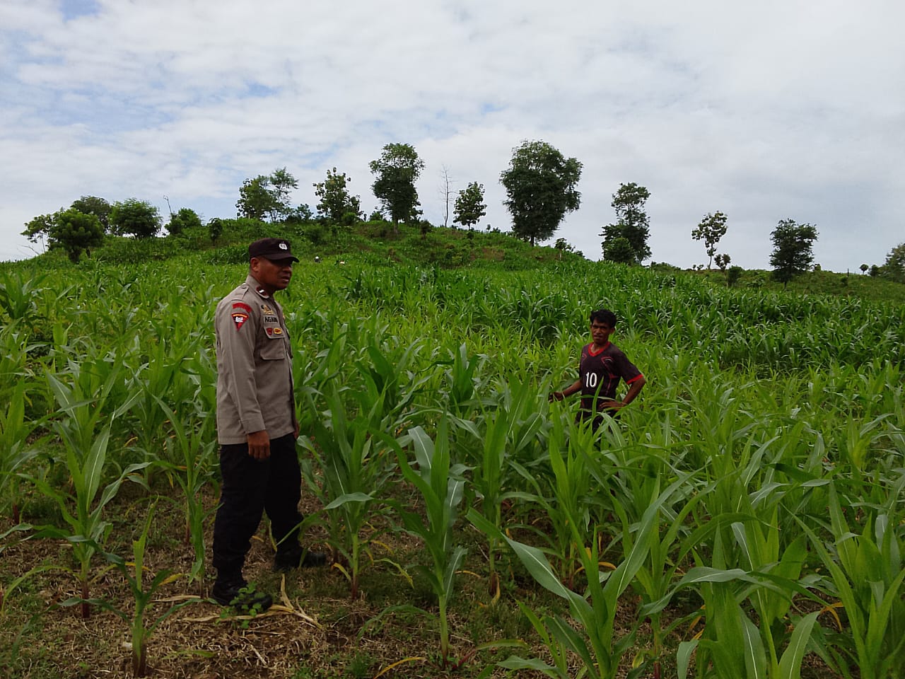 Bhabinkamtibmas Polsek Hu’u Pantau Lahan Jagung Warga Dukung Ketahanan Pangan Nasional menuju Indonesia Emas 2045