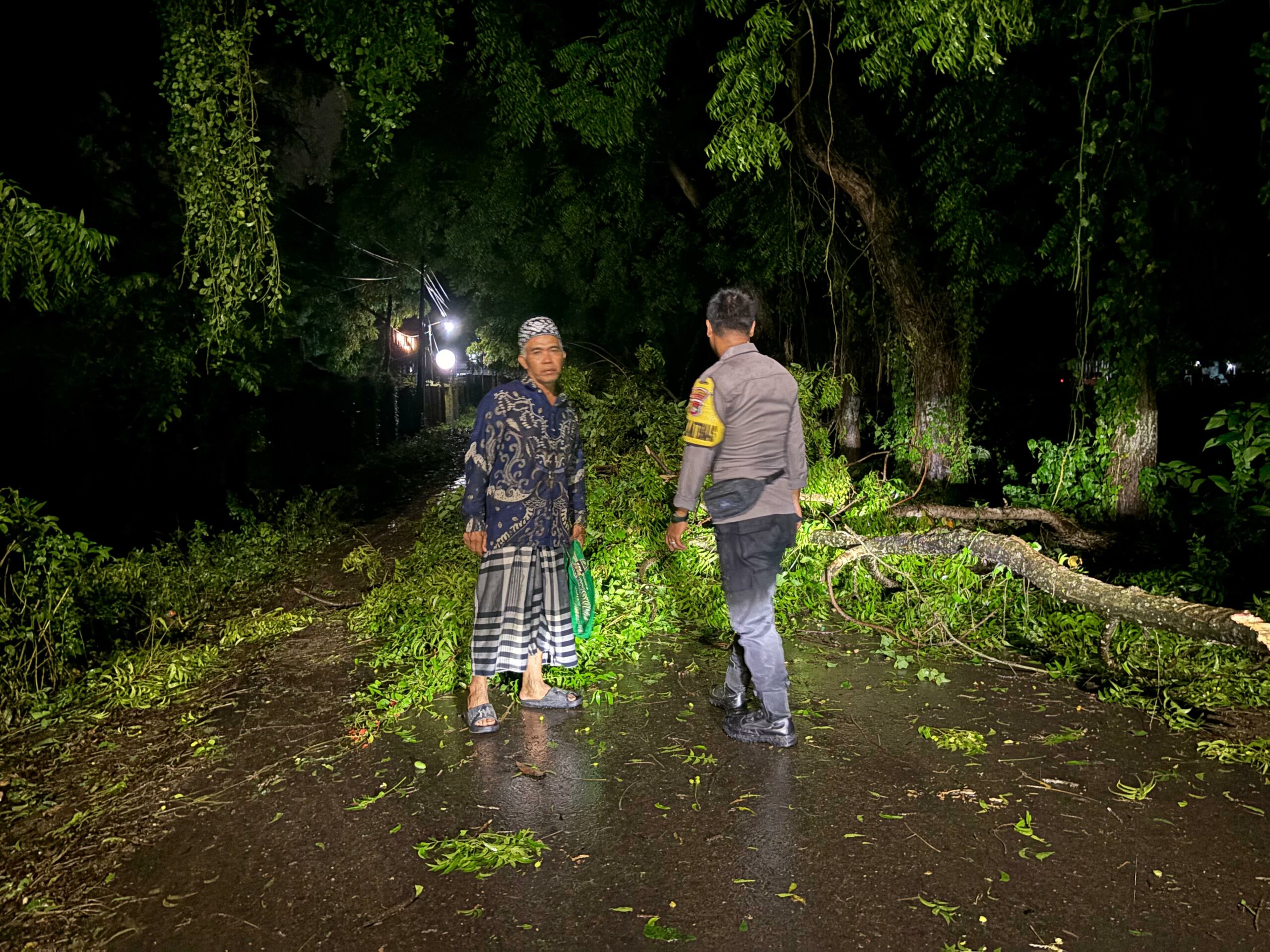 Dari hasil pengecekan di lapangan, tercatat terdapat empat titik lokasi pohon tumbang yang mengakibatkan terganggunya akses jalan serta menimbulkan potensi bahaya bagi pengguna jalan dan warga sekitar. Bhabinkamtibmas berkoordinasi dengan warga setempat untuk melakukan pembersihan secara bertahap sambil menunggu penanganan lebih lanjut dari pihak terkait.