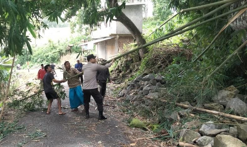 Selain belasan atap rumah warga rusak angin kencang itu juga menyebabkan pohon bambu di desa tersebut tumbang dan sempat mengganggu aktivitas masyarakat.