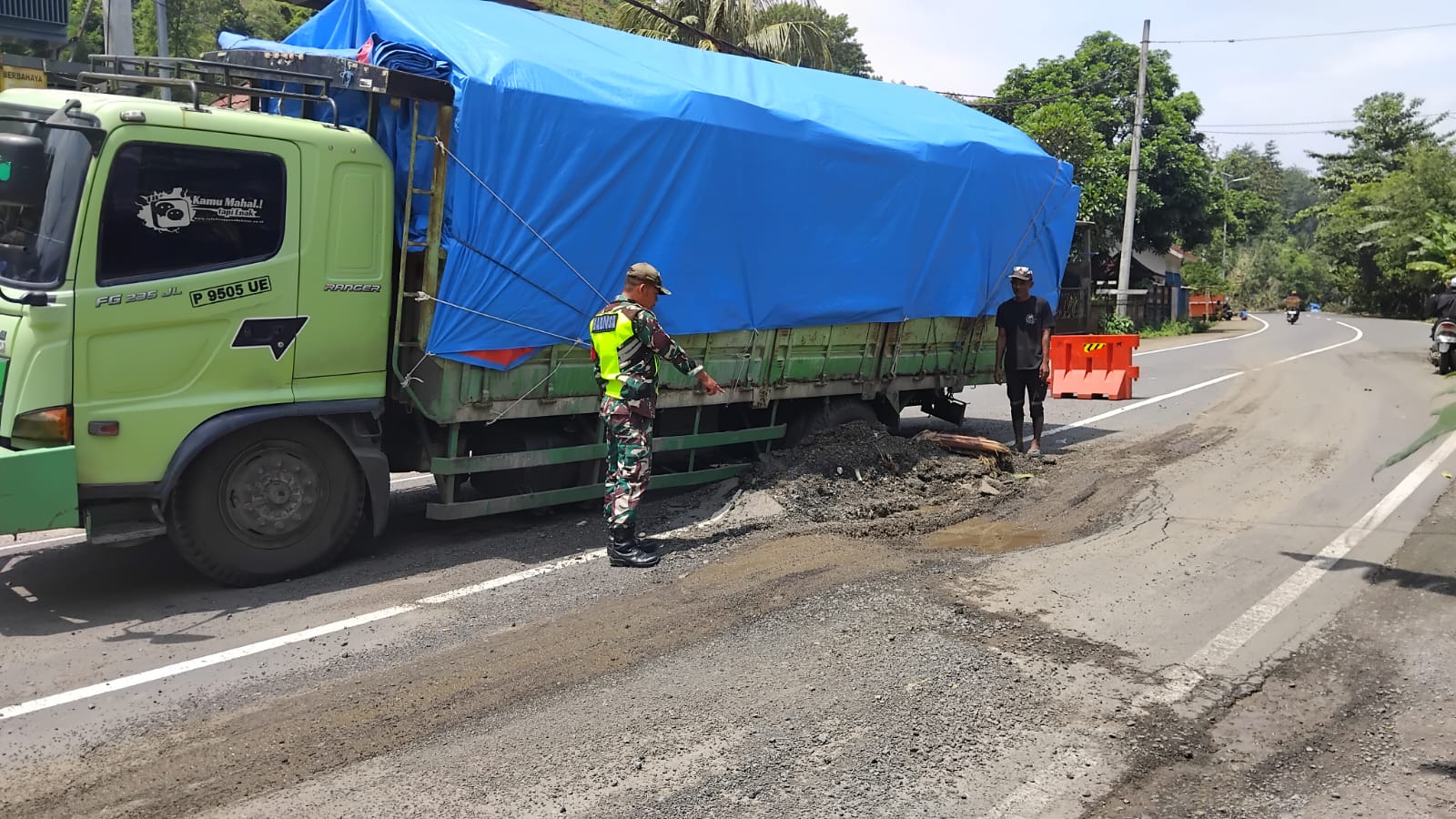 Babinsa Sigap Atasi Truk Amblas di Jalur Gilimas