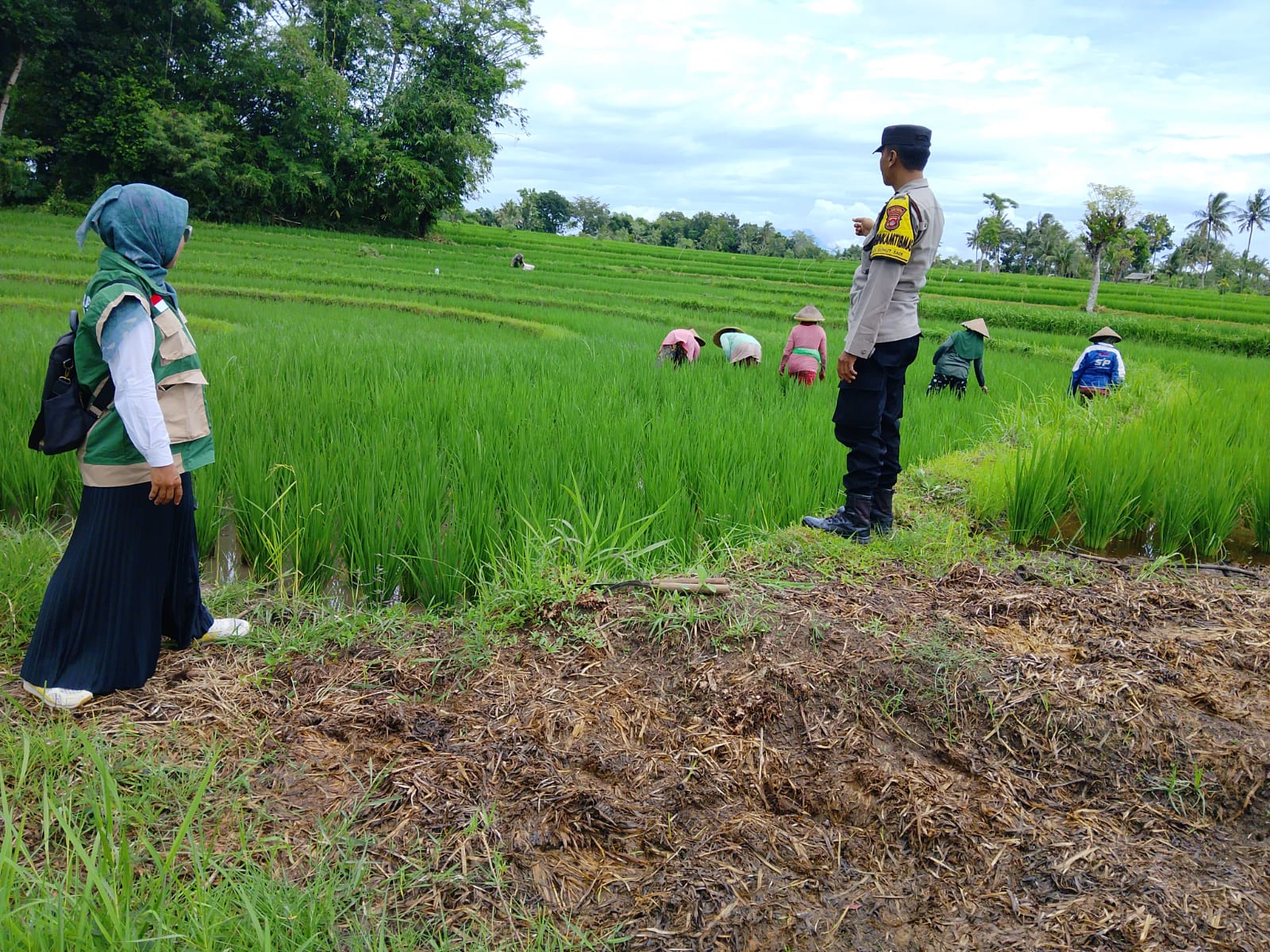 Bhabinkamtibmas Desa Bunut Baok, AIPDA Yulianto, bersama Petugas Penyuluh Lapangan (PPL) turun langsung ke area persawahan untuk memantau aktivitas para petani yang sedang membersihkan tanaman padi dari parasit serta tanaman pengganggu yang berpotensi menurunkan hasil panen.