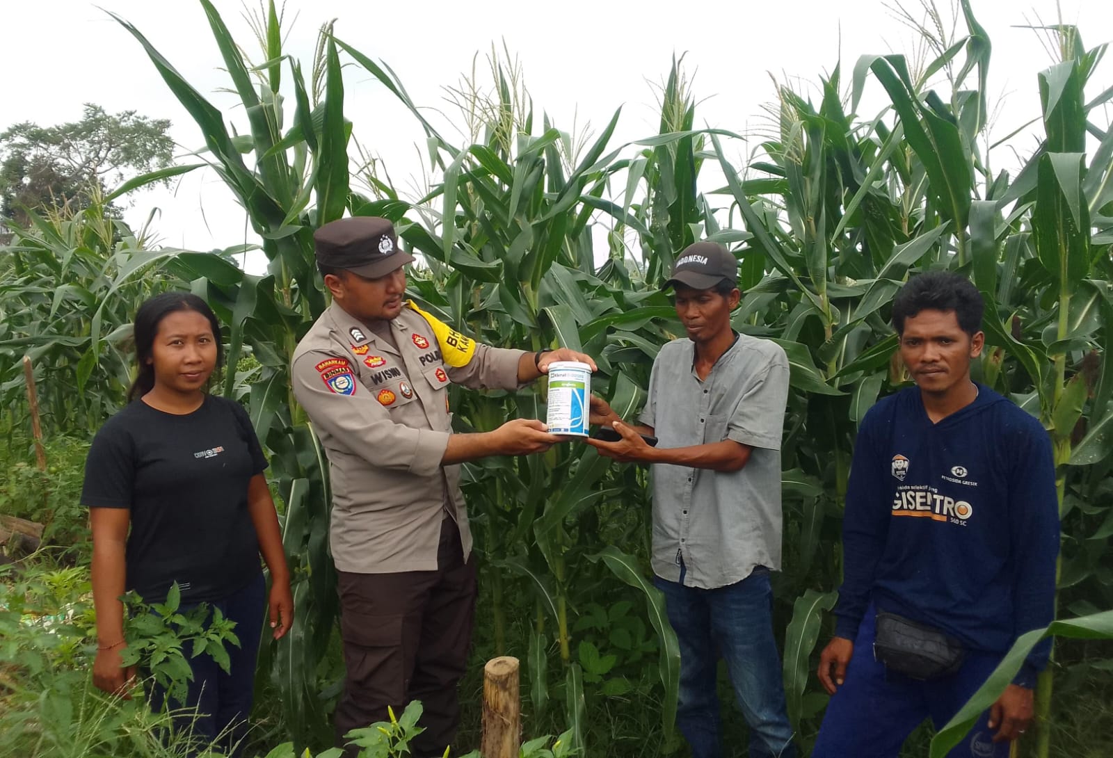 Dalam kesempatan itu juga bhabinkamtibmas menyerahkan racun tikus secara simbolis kepada petani untuk mengatasi hama tikus yang merusak tanaman jagung.