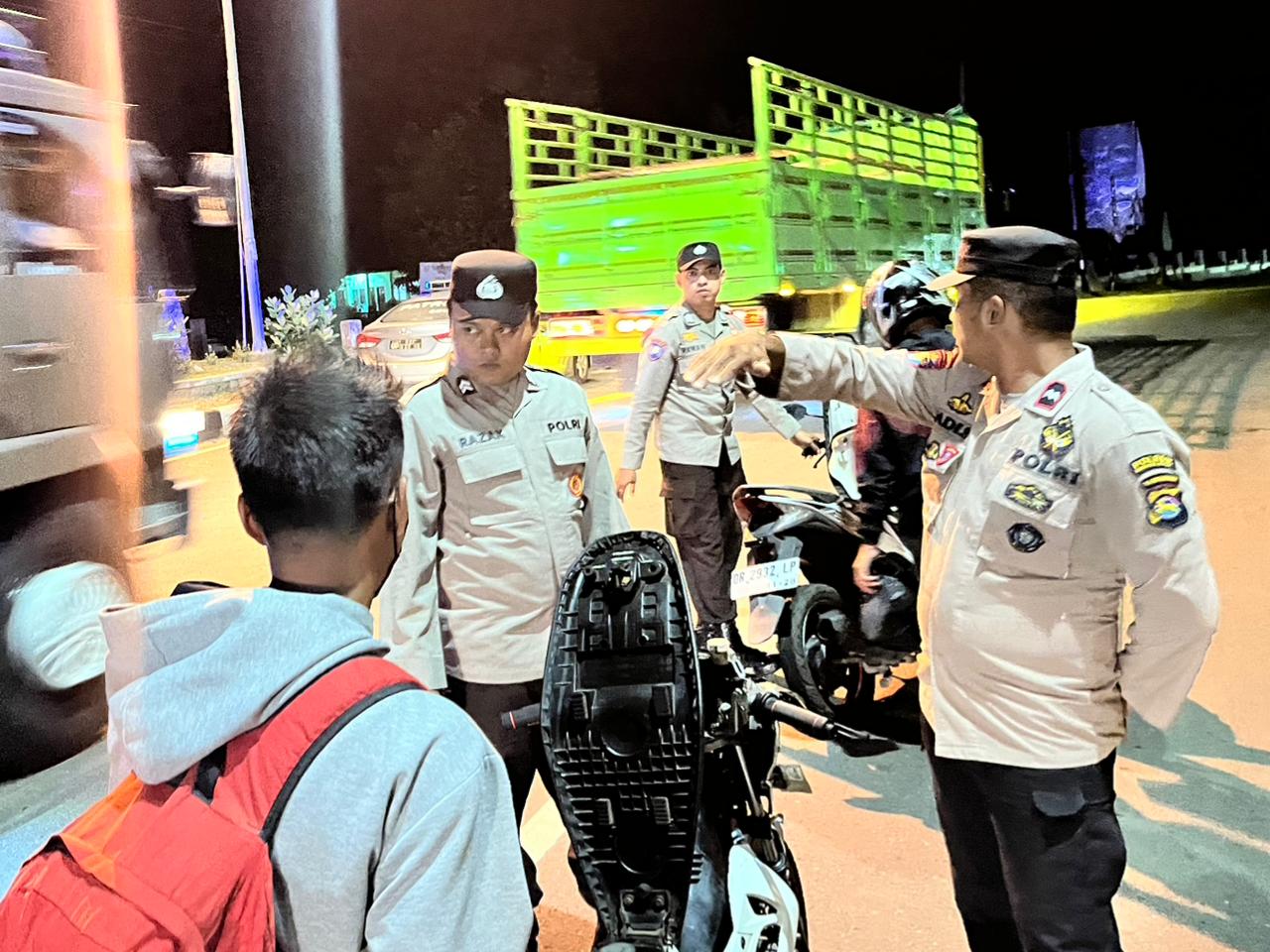 Polsek Poto Tano Gelar KRYD di Jalan Lintas Poto Tano, Ciptakan Situasi Kamtibmas Kondusif