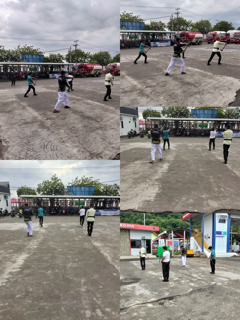 Kanit Pamobvit Polres Bima Kota Berikan Pelatihan Beladiri kepada Satuan Pengamanan Pertamina IT Bima