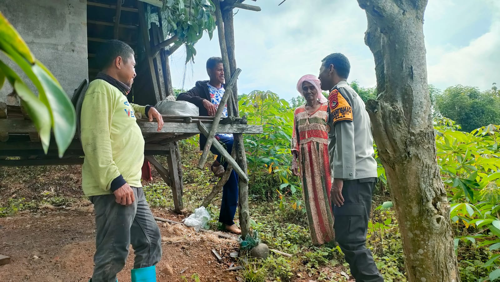 “Bhabinkamtibmas Kelurahan Nitu melaksanakan sambang dan silaturahmi dengan warga binaan yang sedang berada di kebun singkong untuk memastikan situasi tetap aman meskipun banyak rumah yang ditinggalkan oleh pemiliknya,” jelas Kasi Humas.
