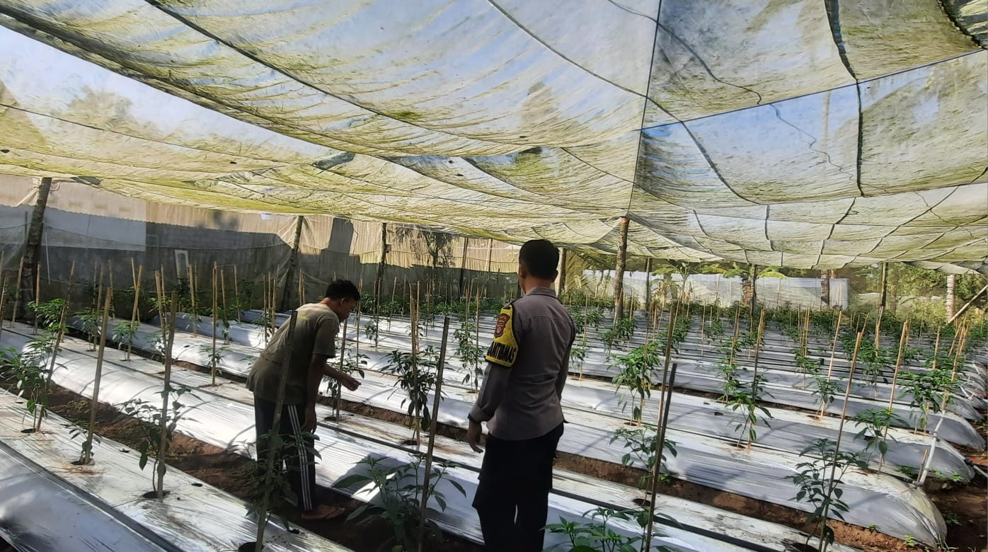 Bhabinkamtibmas Desa Kumbang Monitoring Ketahanan Pangan dan Ajak Warga Jaga Kamtibmas
