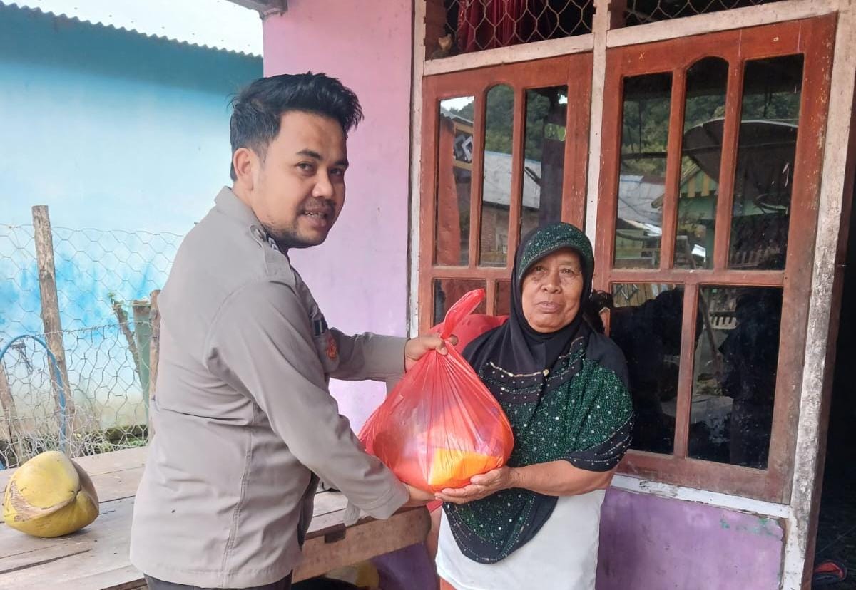 Terkini pada Minggu (22/02/26) Brigadir Imam Banurusman selaku bhabinkamtibmas Desa Waduwani menyerahkan bantuan berupa paket sembako kepada salah satu warga di Desa Binaannya.