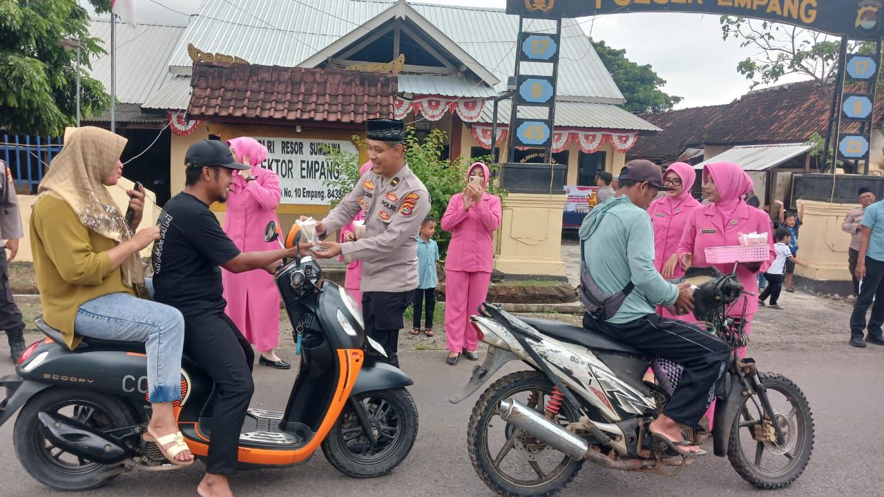 Semangat Berbagi di Bulan Suci, Polsek Empang dan Bhayangkari Salurkan Takjil kepada Masyarakat