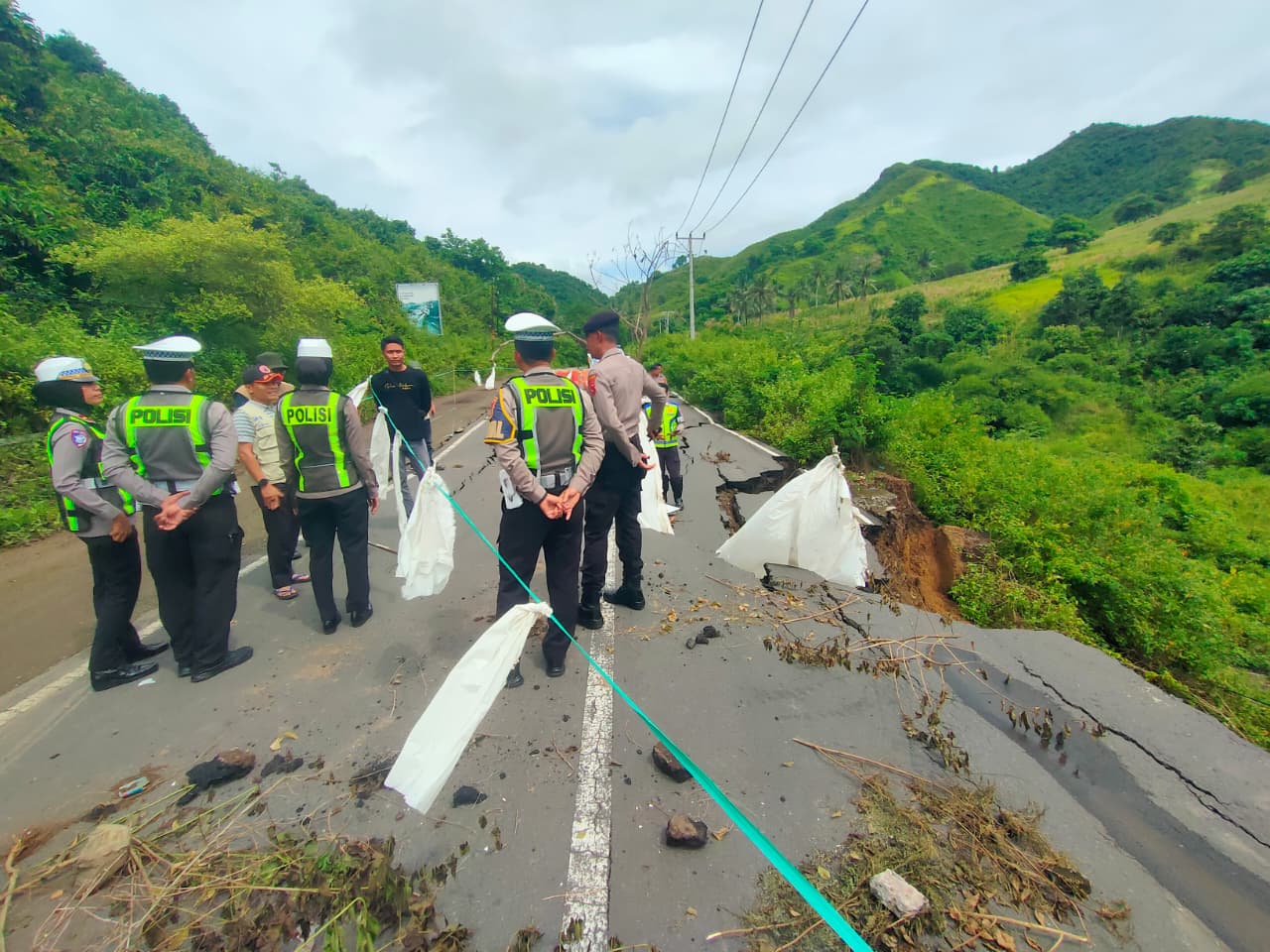Polres Loteng Imbau Pengguna Jalan Waspadai Jalan Amblas di Montong Ajan.