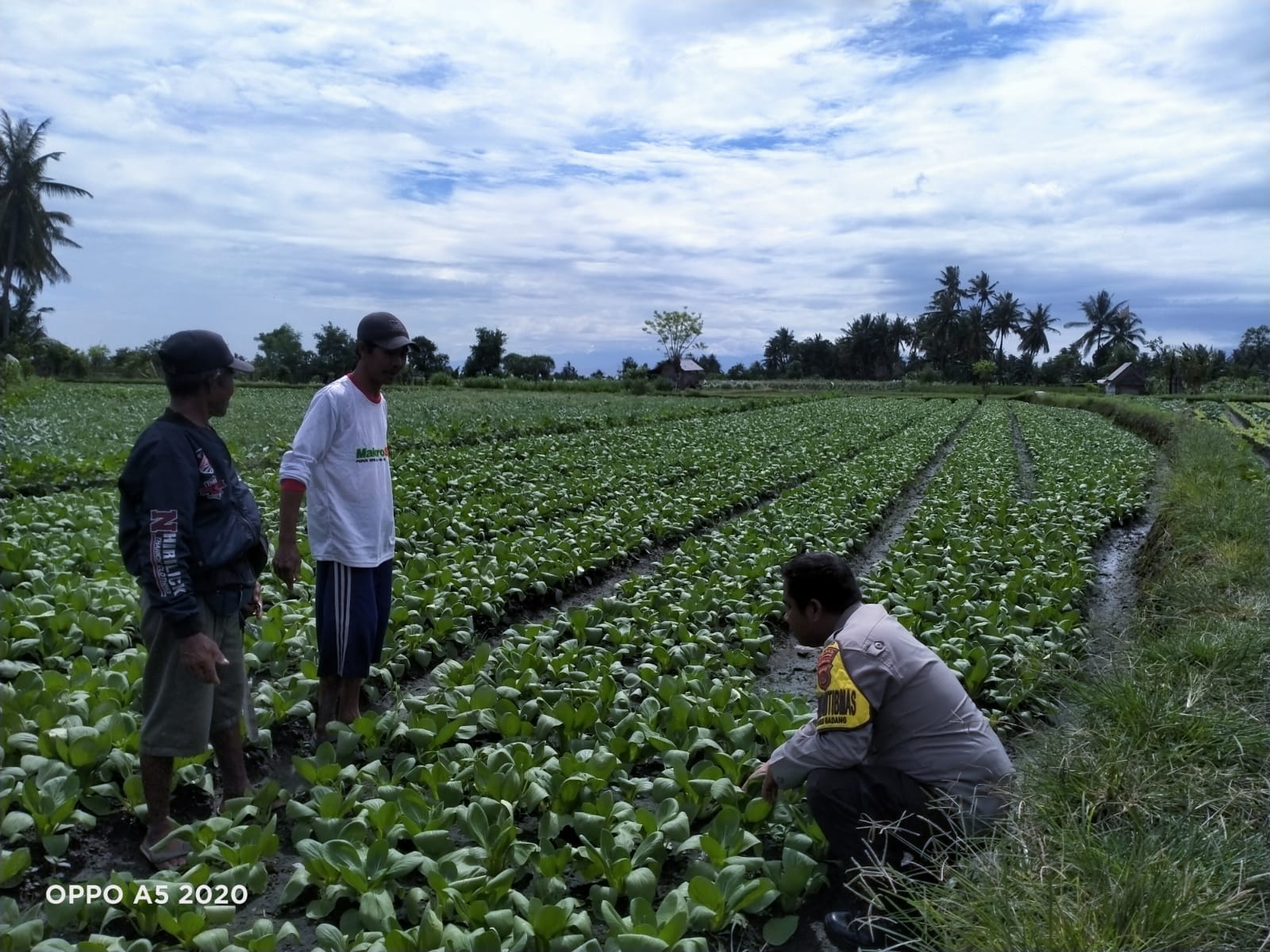 Dalam kegiatan itu, Bripka Sopian Mulyadi meninjau langsung kondisi tanaman serta berdialog dengan petani mengenai perkembangan tanaman potcay yang menjadi salah satu komoditas sayuran bergizi bagi masyarakat. Ia juga memberikan motivasi kepada para petani agar terus memanfaatkan lahan pekarangan secara produktif.