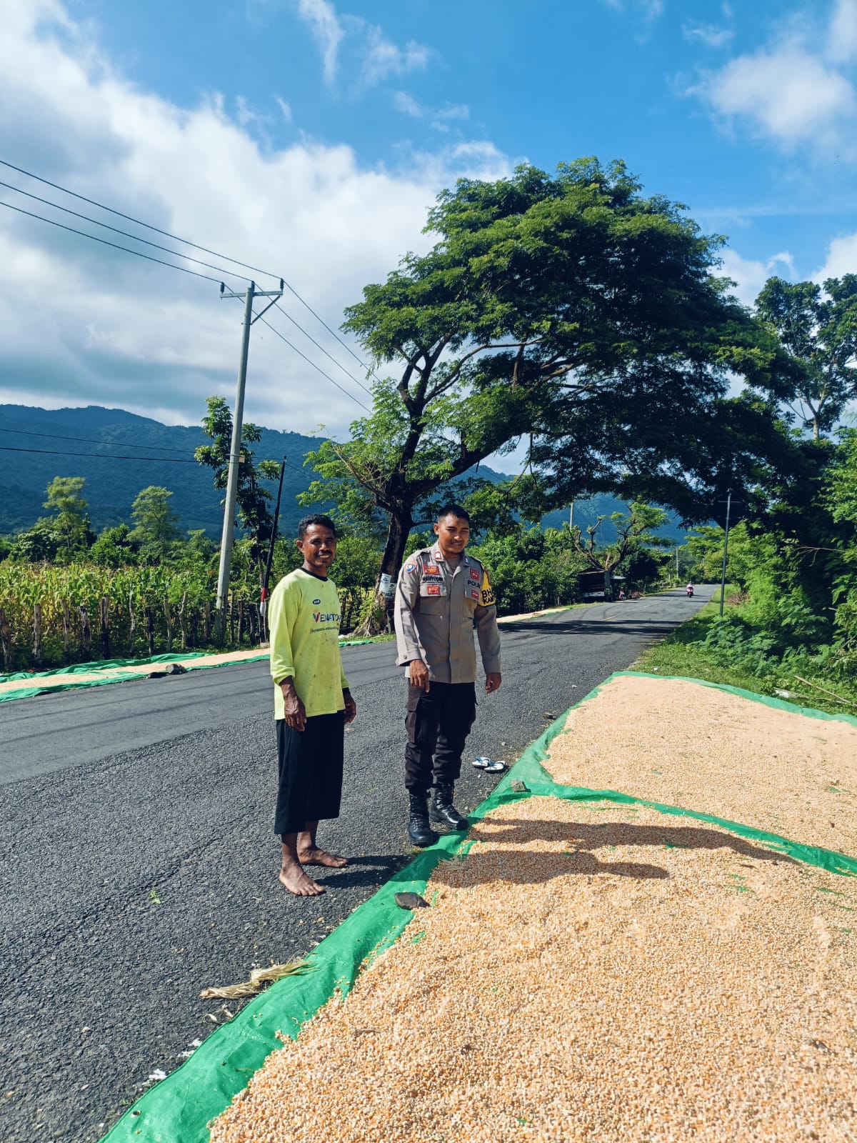 Kegiatan tersebut dilaksanakan oleh Bhabinkamtibmas Desa Adu, Brigadir Wahyudin, dengan memantau aktivitas warga binaan yang sedang menjemur hasil panen jagung milik Ibrahim (45) yang memiliki lahan seluas sekitar 1 hektare.