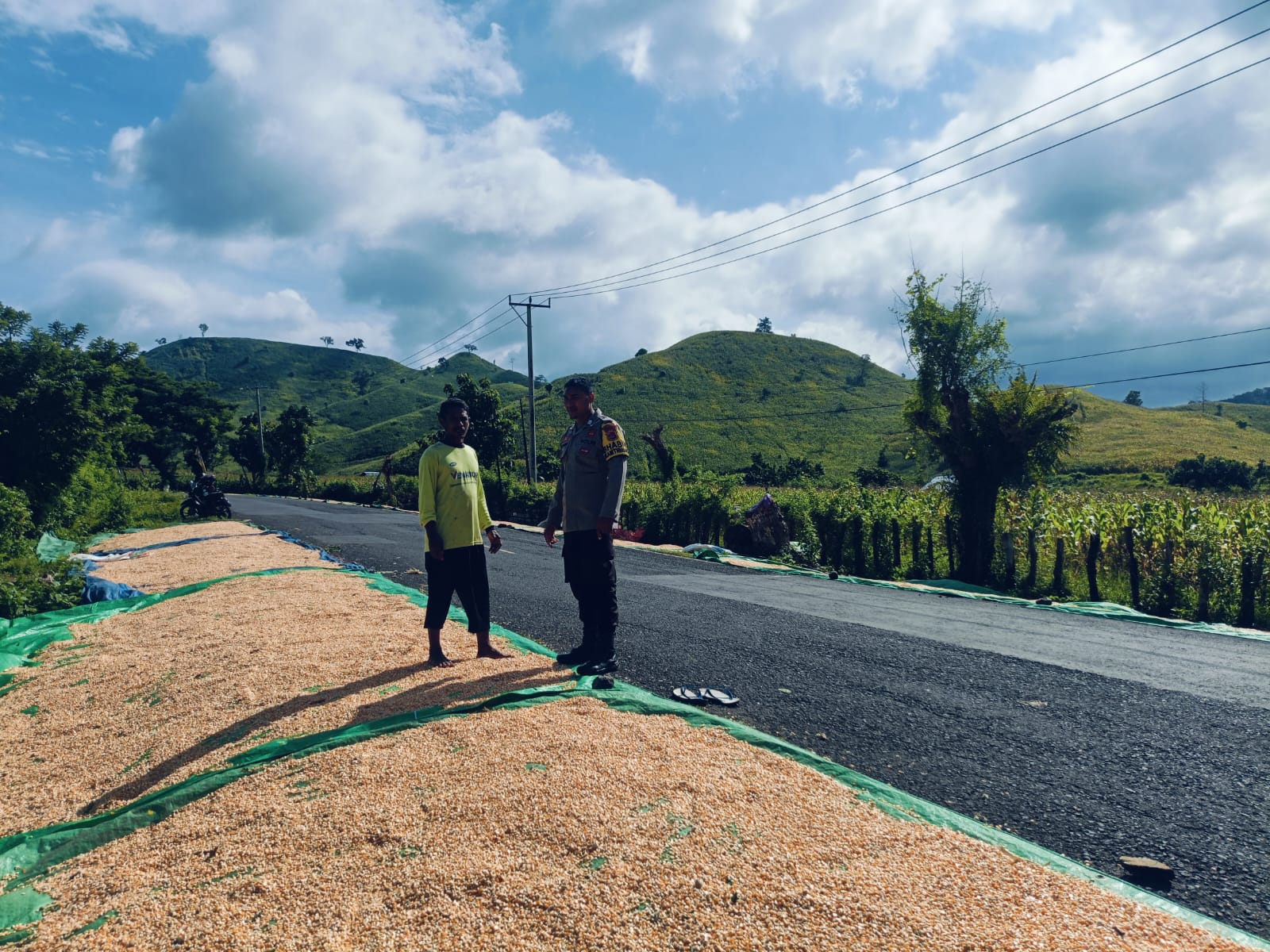 Kegiatan tersebut dilaksanakan oleh Bhabinkamtibmas Desa Adu, Brigadir Wahyudin, dengan memantau aktivitas warga binaan yang sedang menjemur hasil panen jagung milik Ibrahim (45) yang memiliki lahan seluas sekitar 1 hektare.