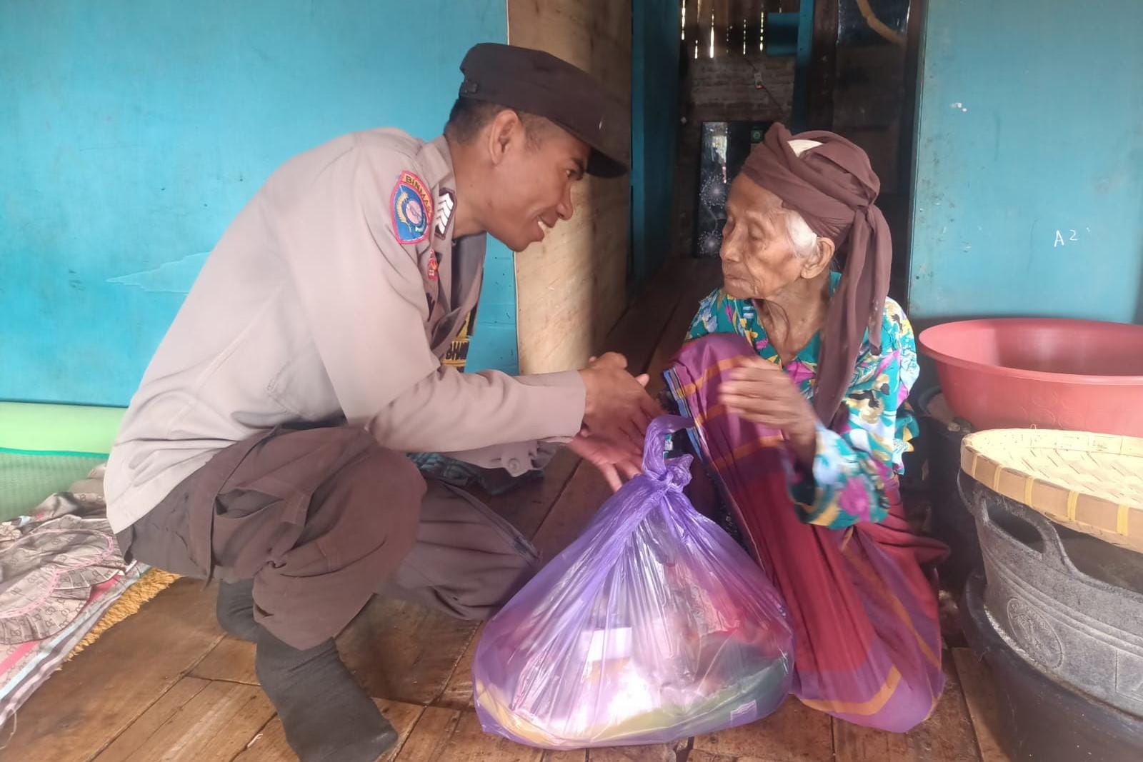 Kehadiran Bripka Imam Firdaus itu disambut bahagia oleh nenek Salama sembari berucap terimakasih
