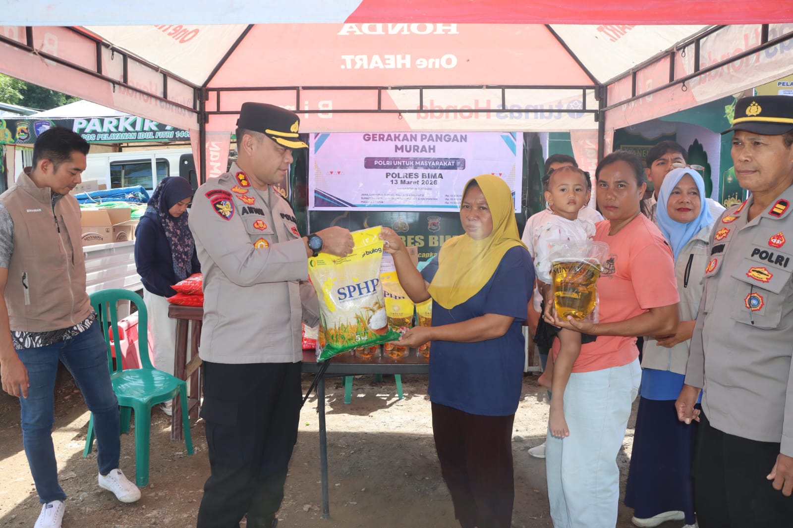 Dalam kegiatan tersebut Polres Bima Kabupaten menyediakan bahan pokok seperti beras, minyak goreng dan lainnya dengan harga yang sangat terjangkau.