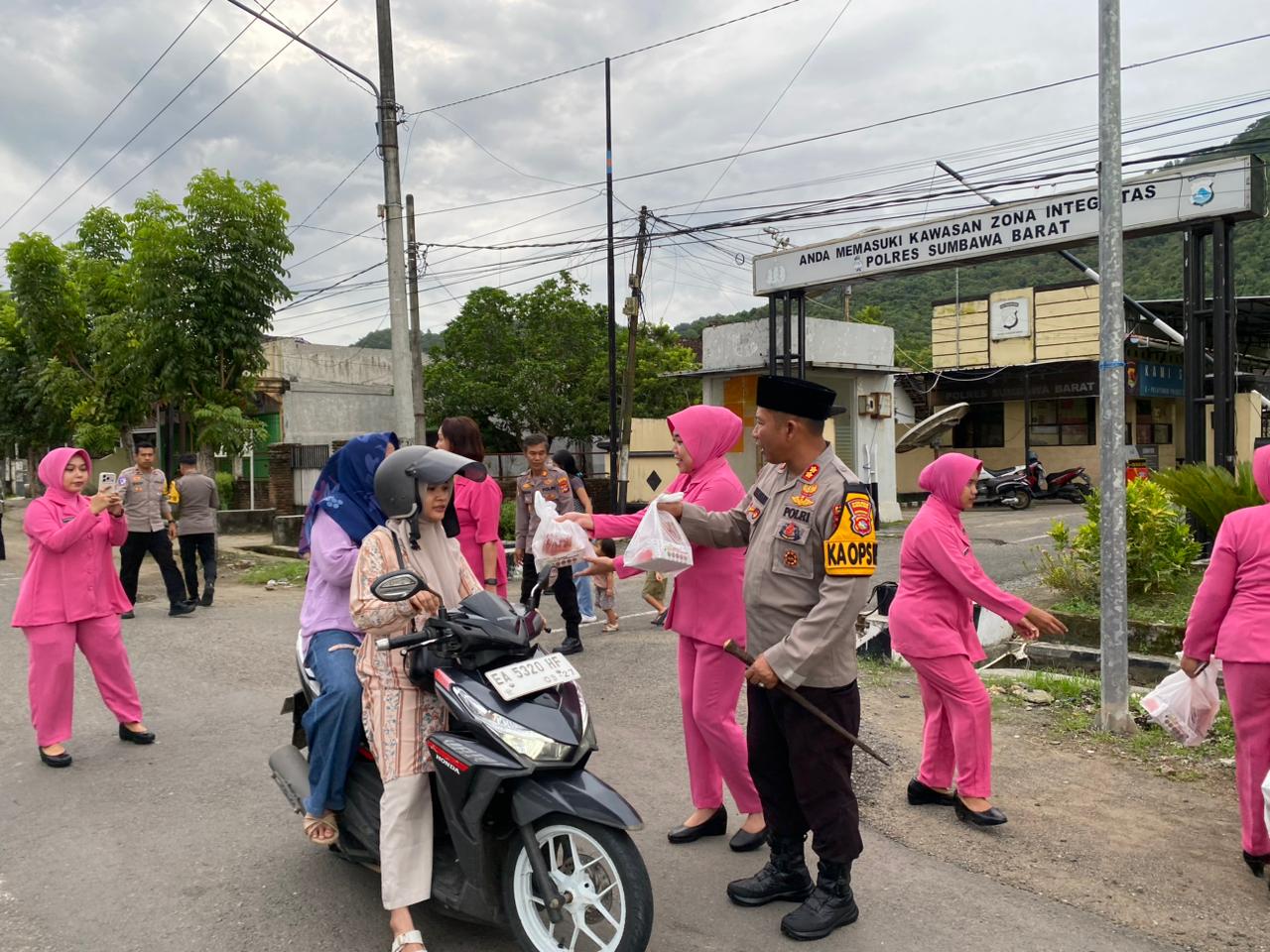 Kegiatan sosial ini dipimpin langsung oleh kapolres sumbawa barat AKBP Zulkarnain,S.I.K di dampingi ibu ketua cabang bhayangkari sumbawa barat yang diikuti oleh para pju dan personel Polres Sumbawa Barat bersama anggota Bhayangkari yang turun langsung ke jalan untuk membagikan paket takjil kepada pengendara roda dua maupun roda empat yang melintas menjelang waktu berbuka puasa.