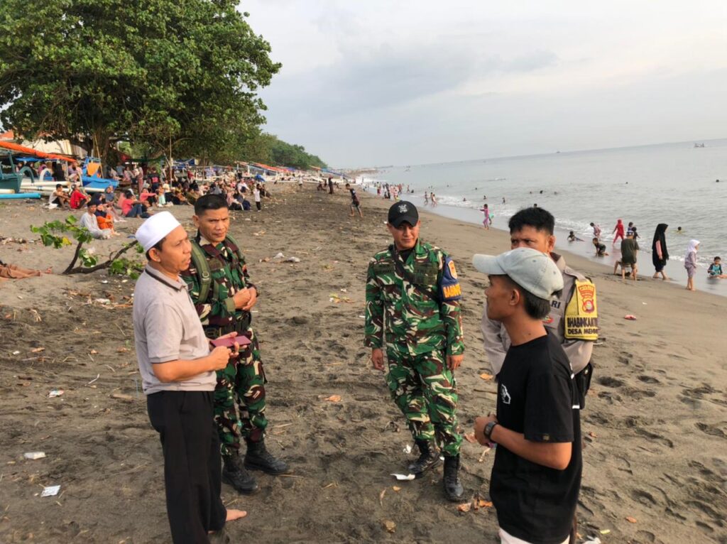 Di tengah tawa keluarga, riuh anak-anak bermain di pesisir, hingga warga yang saling bersilaturahmi, para petugas tampak sigap berpatroli, mengawasi situasi, sekaligus memberikan imbauan humanis kepada pengunjung. ” Dengan Pendekatan persuasif ini menciptakan suasana yang tidak hanya aman, tetapi juga nyaman dan bersahabat,” ujar Serka Kurnain.