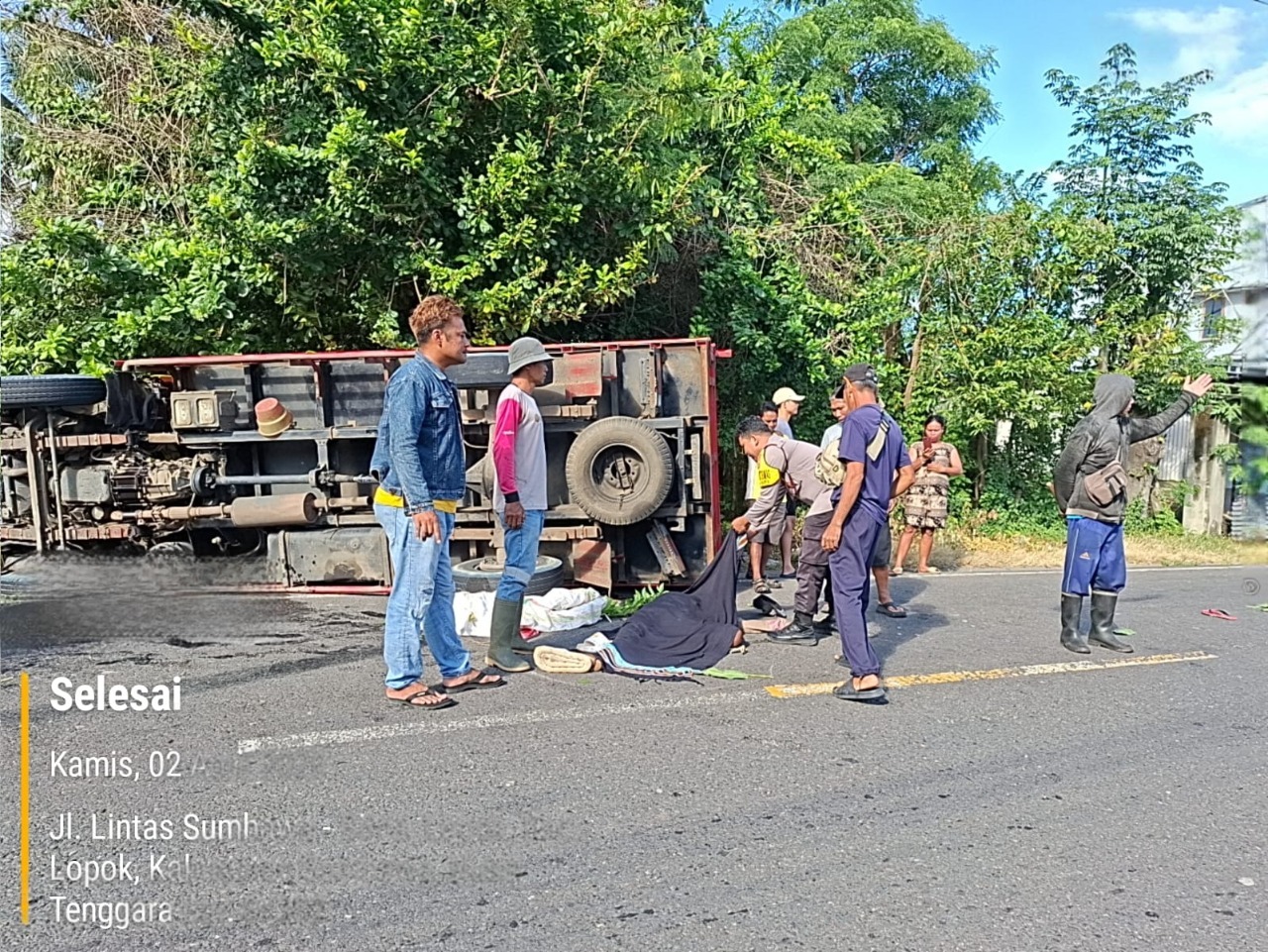 Akibat peristiwa ini, penumpang sepeda motor berinisial AB, remaja asal Sumba Barat Daya, NTT, dilaporkan meninggal dunia di tempat akibat luka serius yang diderita. Jenazah korban segera dievakuasi oleh petugas menuju Puskesmas Lopok menggunakan mobil ambulans. Sementara itu, pengendara motor dan pengemudi truk dilaporkan dalam kondisi selamat namun mengalami trauma.