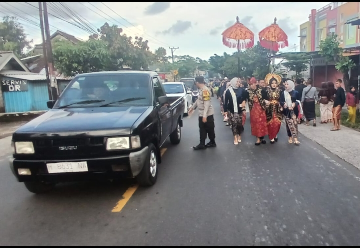 Lombok Timur – Bhabinkamtibmas Desa Montong Baan, Polsek Sikur, melaksanakan kegiatan pengamanan dan pengawalan (pamwal) tradisi nyongkolan pada Kamis, 9 April 2026. Kegiatan tersebut dimulai pukul 16.00 Wita, dengan melibatkan masyarakat setempat sebagai peserta utama dalam prosesi adat yang menjadi bagian dari budaya Sasak tersebut.