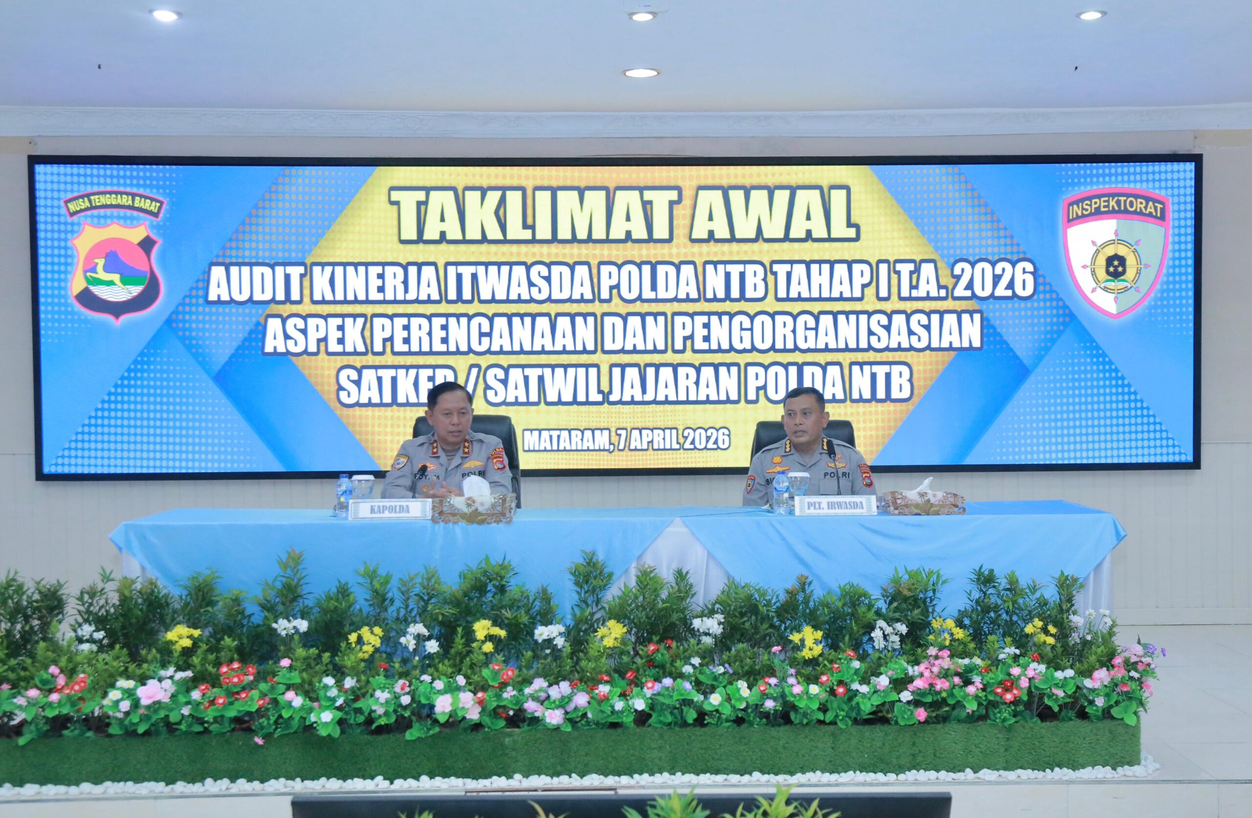Mataram, NTB – Kapolda NTB Irjen Pol. Edy Murbowo, SIK., secara resmi membuka kegiatan Taklimat Awal Audit Kinerja Itwasda Tahap I Tahun Anggaran 2026 di Gedung Rupatama Polda NTB, Selasa (07/04/2026).