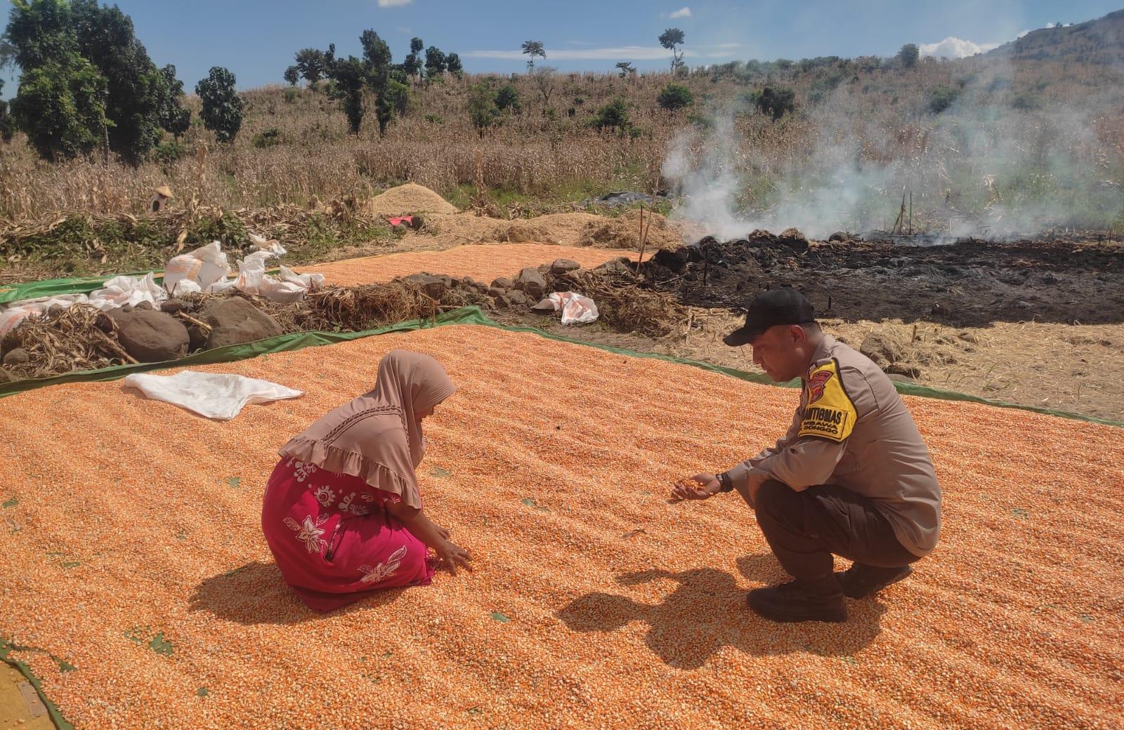 Dukung Penuh Program Ketahanan Pangan Nasional, Bhabinkamtibmas Polsek Donggo Dampingi Para Petani Jagung di Desa Binaannya