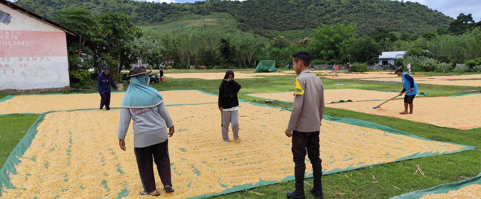 Dalam rangka mendukung program ketahanan pangan nasional, Polsek Kempo melalui Bhabinkamtibmas Desa Songgajah terus aktif melakukan pemantauan terhadap aktivitas pertanian masyarakat. Salah satunya dengan melaksanakan pemantauan proses penjemuran jagung milik warga binaan di Dusun Mada Nggajah, Desa Songgajah, Kecamatan Kempo, Kabupaten Dompu, Kamis (9/4/2026) sekitar pukul 11.30 WITA.