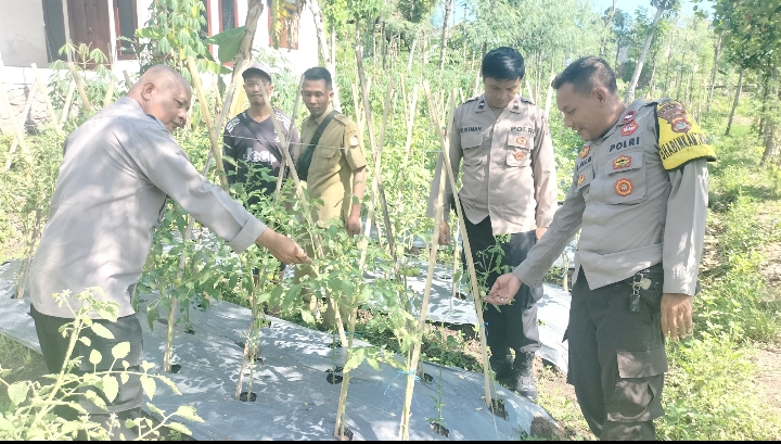 Kapolsek Sakra Monitoring Ketahanan Pangan Tanaman Tomat dan Cabai di Desa Sakra