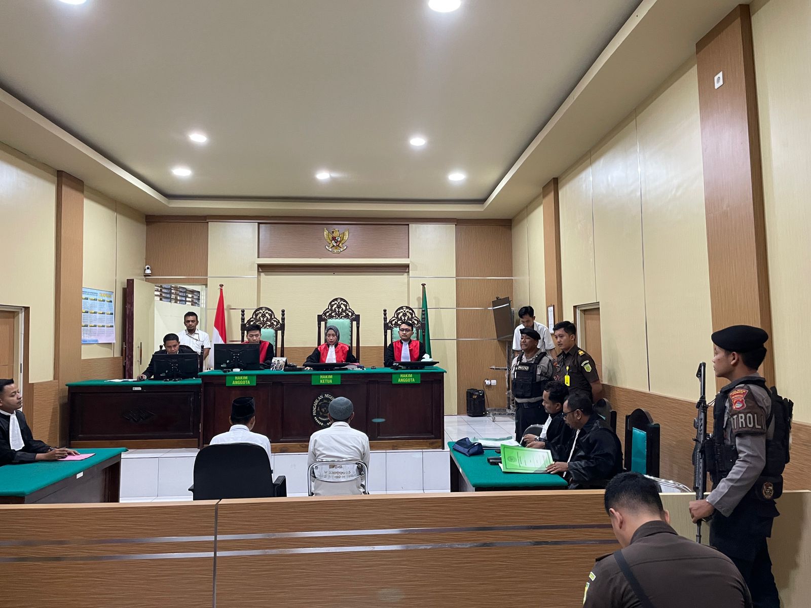 Dalam persidangan, Majelis Hakim yang dipimpin oleh Faqhina Fiddin, S.H., M.H., didampingi hakim anggota, memberikan kesempatan kepada masing-masing penasihat hukum terdakwa untuk membacakan pledoi atau nota pembelaan.