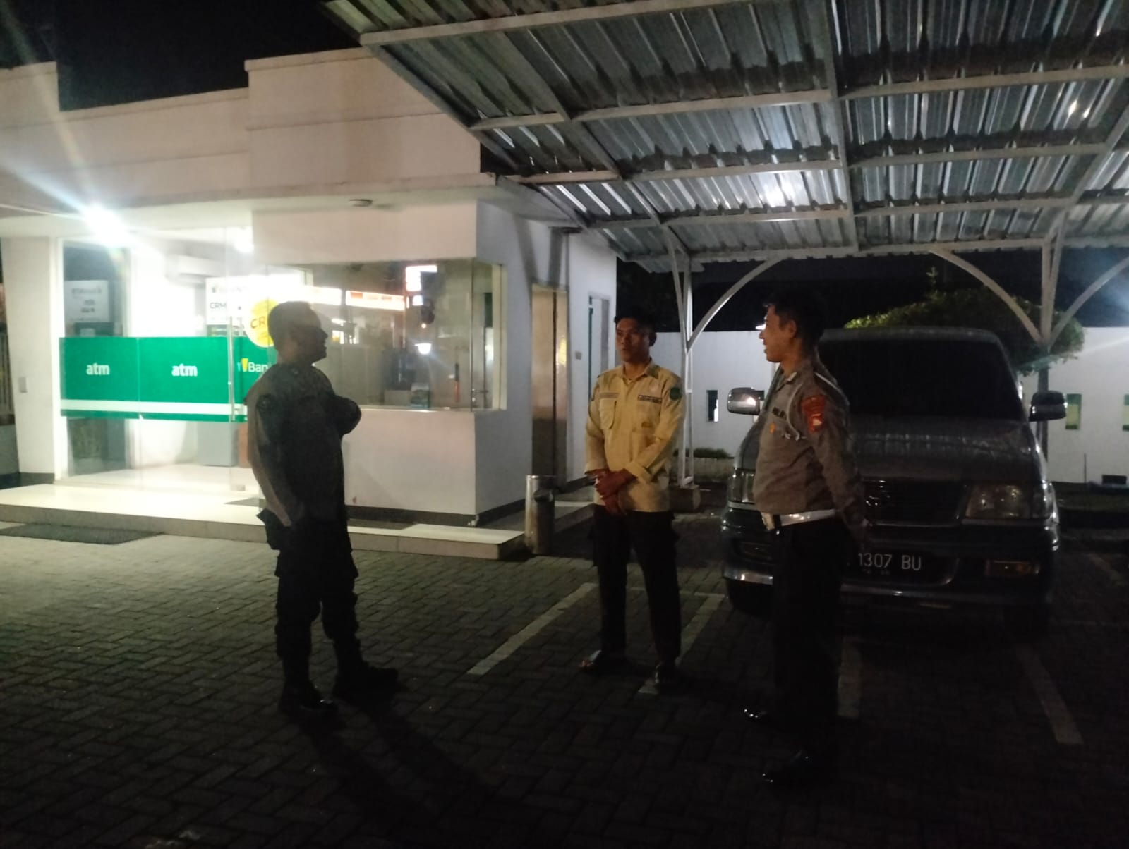 Dalam kegiatan tersebut, petugas melakukan pengecekan situasi di sekitar kantor bank dan mesin ATM guna memastikan kondisi tetap aman serta mengantisipasi potensi gangguan keamanan, terutama tindak pidana pencurian dengan pemberatan (curat) maupun pencurian dengan kekerasan (curas).
