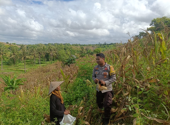 Monitoring Panen Jagung, Bhabinkamtibmas Desa Wakan Pastikan Kegiatan Warga Berjalan Lancar