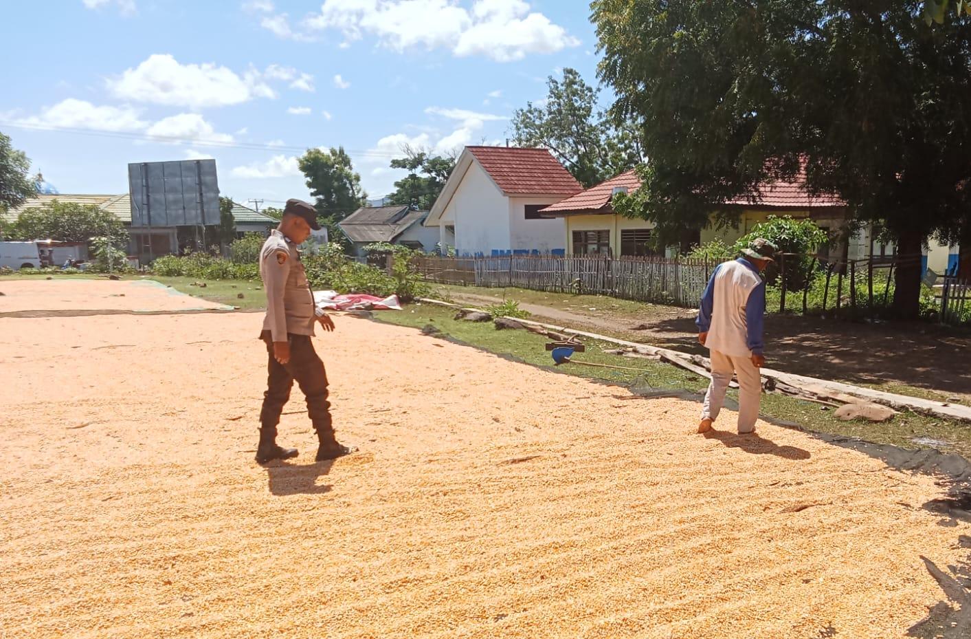 Seperti halnya yang dilaksanakan oleh Brigpol I MD Juli Putra personel Polsek Soromandi yang bertugas sebagai Bhabinkamtibmas Desa Wadukupa yang membantu menjemur jagung warga Binaannya pada Rabu 22 April 2026 siang.