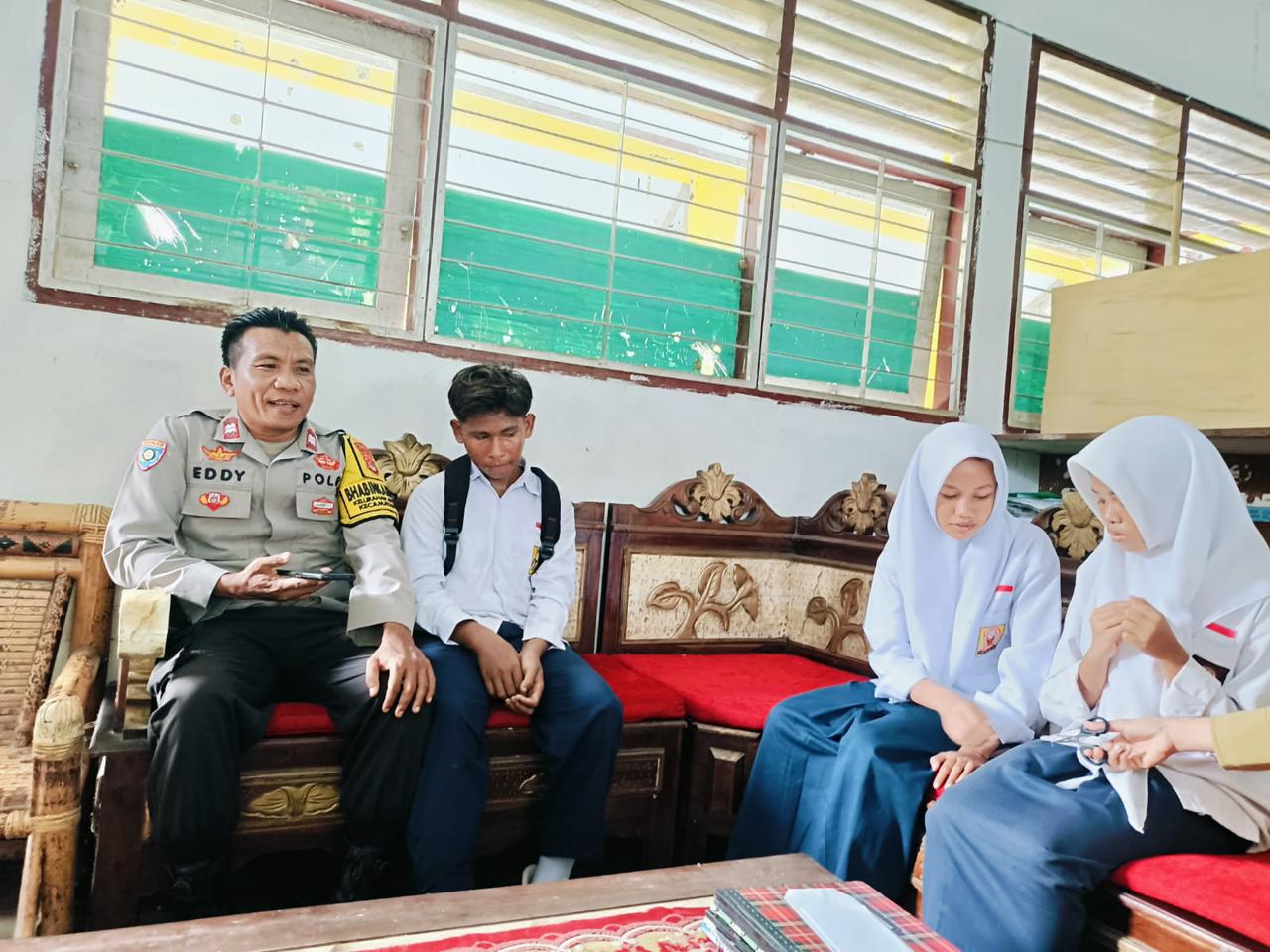 Dalam kesempatan tersebut, AIPTU Edi Jaya Wardana menyampaikan pesan-pesan kamtibmas kepada para siswa dan dewan guru.