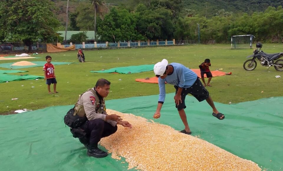 Dalam rangka mendukung Program Ketahanan Pangan Nasional menuju Indonesia Emas, Bhabinkamtibmas Desa Sawe Polsek Hu’u, AIPDA Agani, melaksanakan pemantauan hasil panen jagung milik warga binaan atas nama Kasman di Dusun Sigi, Desa Sawe, Kecamatan Hu’u, Rabu (29/04/2026) pukul 11.00 WITA.