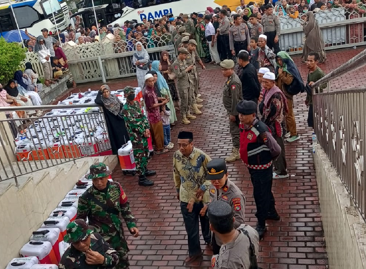 Untuk mendukung kelancaran pemberangkatan, sebanyak sembilan unit bus Damri dikerahkan sebagai transportasi utama. Armada tersebut digunakan untuk mengangkut seluruh jamaah dari lokasi pelepasan menuju titik keberangkatan berikutnya. Pengaturan keberangkatan dilakukan secara bertahap guna menghindari penumpukan kendaraan dan kerumunan. Petugas juga memastikan seluruh jamaah naik ke bus sesuai dengan kelompok masing-masing. Hal ini dilakukan untuk menjaga ketertiban dan efisiensi proses keberangkatan.