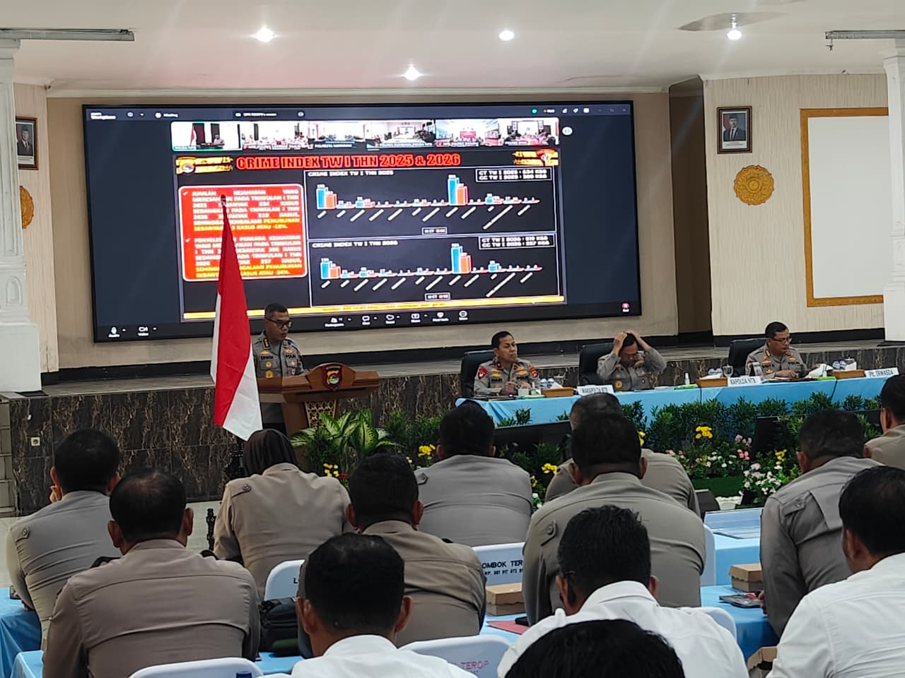Rapat strategis ini dihadiri langsung oleh Wakapolda NTB, para Pejabat Utama Polda NTB, serta seluruh Kapolres/ta jajaran. Sementara itu, pejabat utama di tingkat Polres/ta mengikuti kegiatan secara virtual melalui Zoom Meeting dari wilayah masing-masing, dipimpin oleh Wakapolres setempat.